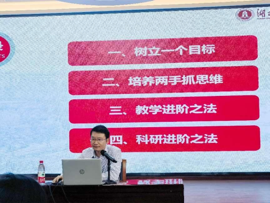 聂智教授围绕“思政课教师教学科研的双重进阶之法”这一主题,分别从思政课如何讲深、讲透、讲活三方面对教学进行详细指导,并结合自身多年在高校思政课教育教学、科研等方面的丰富经历和宝贵经验,传授科研精进的方法与心得。