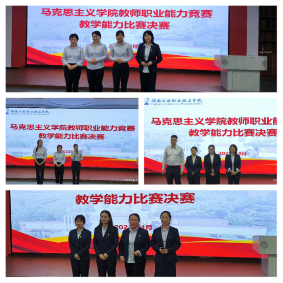 赛前,学院组织评委分别对参赛代表队的参赛作品进行评审。在现场比赛中,通过教学展示、实施报告介绍、现场答辩等环节开展比赛。气氛最热烈的是答辩环节,评委针对四组参赛作品分别进行提问,参赛队员围绕教学内容实施、教学设计创新等方面展开答辩。本次比赛充分展示了团队教师的课程设计能力以及教学实施能力。经过激烈角逐,形策教研室代表队脱颖而出,获得一等奖,习概教研室和德育教研室代表队分别获得二等奖,德法教研室代表队获得三等奖。形策教研室代表队将代表马克思主义学院参加学校决赛。