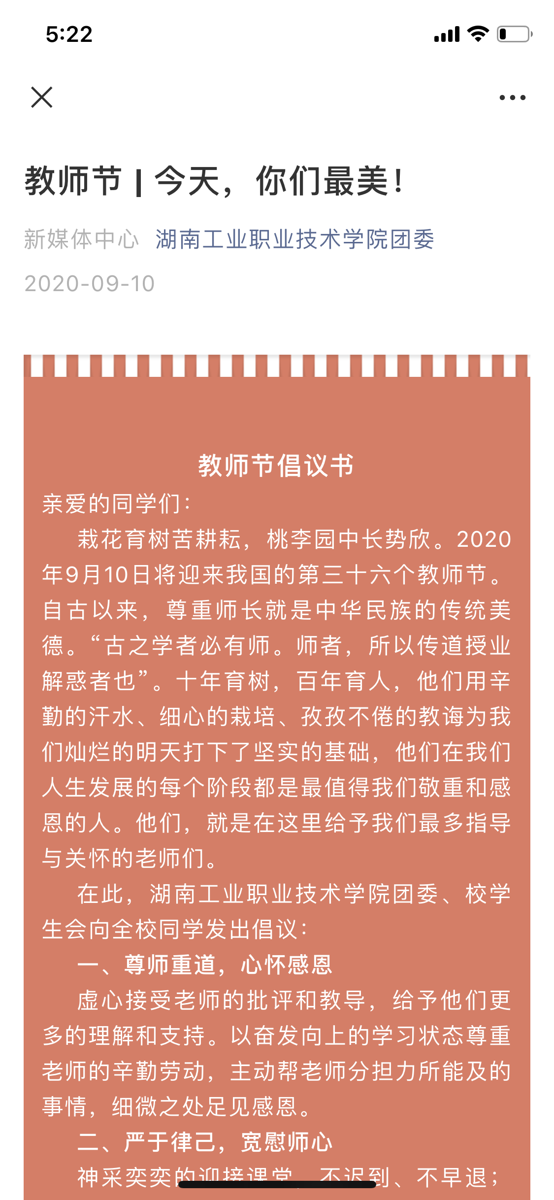 与此同时,各班级学生、各学生组织都自发为老师们送去小礼物,并致以节日的问候。老师们的朋友圈被各种“晒职业幸福感”刷屏。