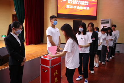 本次学生代表大会审议了第八届学生会工作报告,表决通过了《电子pg游戏平台下载第九次学生代表大会选举办法(草案)》、《关于通过电子pg游戏平台下载第八届学生会工作报告的决议(草案)》为今后学生会工作指明了方向。同时大会秉持公平、公开、公正的原则,在学生代表大会第二次全体会议、学生代表大会第三次全体会议上,采用无记名投票、差额选举的方式,由150位学生代表现场投票、记票,最终选举出电子pg游戏平台下载第九次学生代表大会常任代表委员会委员17人、电子pg游戏平台下载第九届学生会主席团成员5人,实现了学生会的薪火相传。
