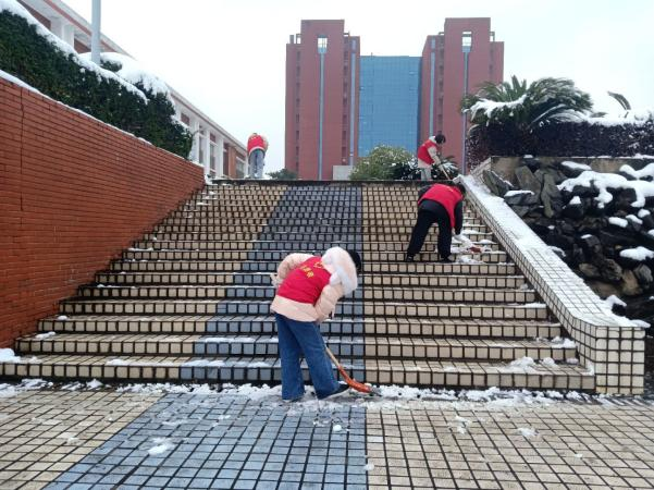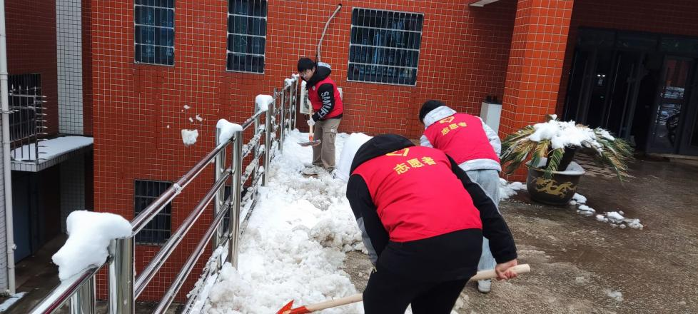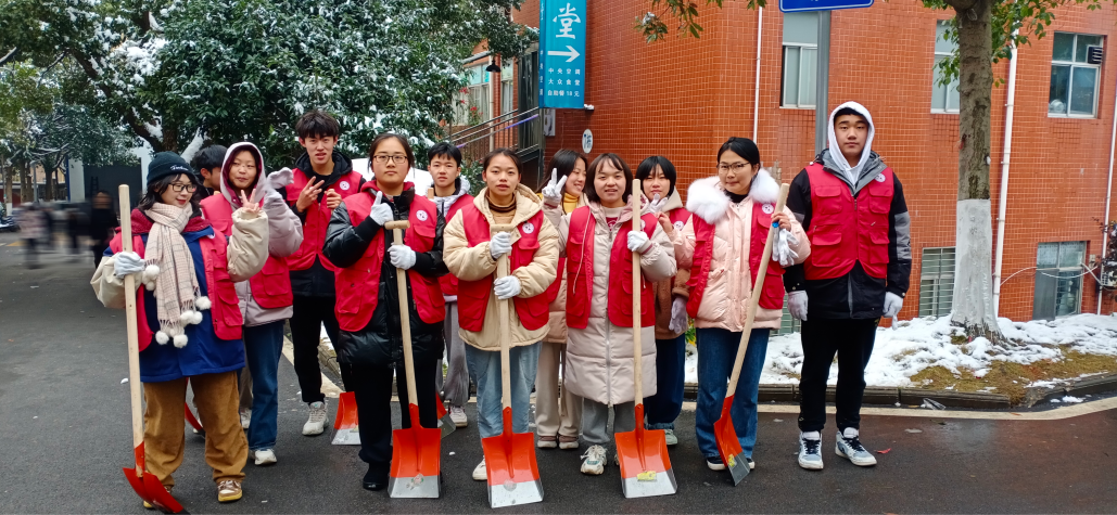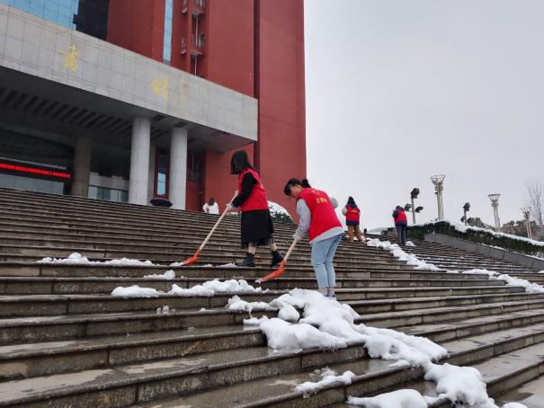12月27日, 因持续性降雪,学校内道路出现明显积雪和结冰现象,造成师生交通不便,为确保道路安全,我校青年志愿者协会积极行动,开展铲雪除冰志愿服务。在图书馆、宿舍、食堂和教学楼附近道路清理积雪,为过往师生创造一个安全、畅通的交通出行环境。