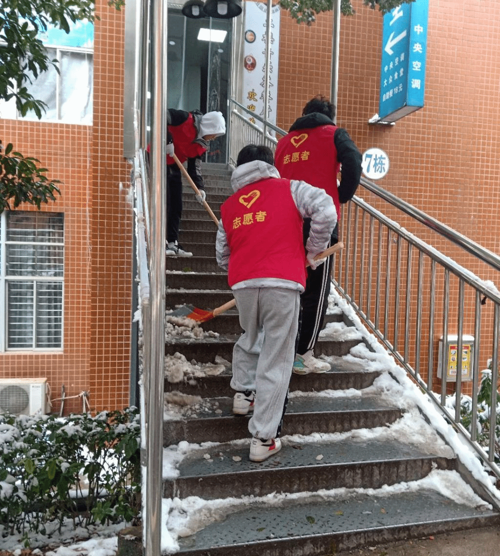虽然天气十分寒冷,但也 抵挡 不住志愿者高涨的热情,大家拿着铁锹、扫帚等扫雪工具,不畏严寒,齐心协力,忙碌的红马甲在寒冷的冬日里形成了一道温暖靓丽的风景线。虽然室外温度很低,但志愿者们对志愿活动的热情却让这个冬日变得分外温暖,也触动着其他同学们的内心。