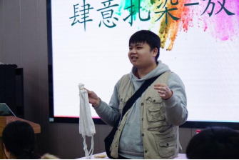 这次活动我们邀请到了“peer毅恒挚友”组织的彭润鑫,彭老师为我们讲解了扎染工艺的基本知识、扎染特点和制作技巧,并分发了制作所需的白色环保袋和工具,最后展示了整体扎染与局部扎染的完成效果。