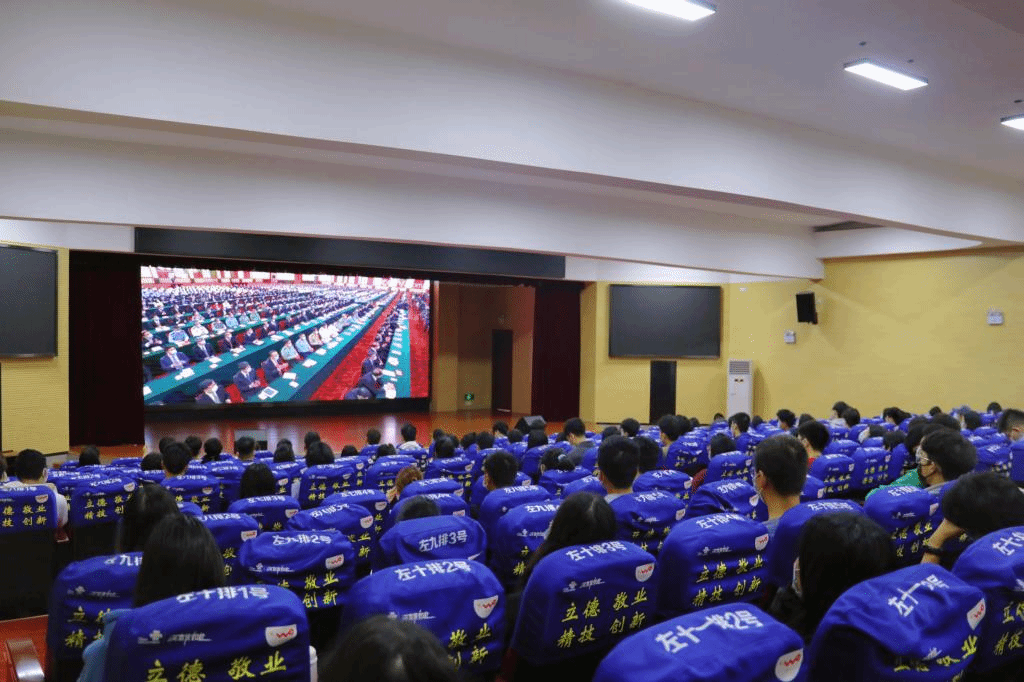 5月10日上午,庆祝中国共产主义青年团成立100周年大会在北京人民大会堂隆重举行,习近平总书记出席大会并发表重要讲话,为中国青年运动擘画新的未来。我校团委组织300多名青年学生在1102大学生活动中心集中进行收看现场直播,各二级学院团学组织自行组织集中收看。直播结束后同学们纷纷表示,要牢记党的教诲,立志民族复兴,不负韶华,不负时代,不负人民,在青春的赛道上奋力奔跑,争取跑出当代青年的最好成绩。