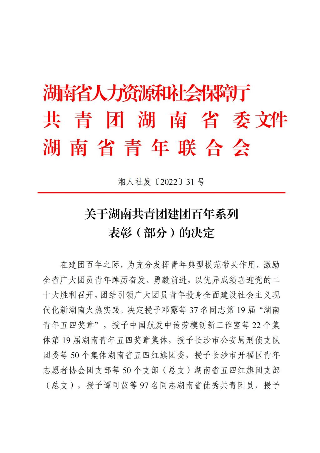 在建团百年之际,第19届“湖南青年五四奖章”集体获奖名单正式公布。经过竞争性评选,全省共有22个集体被授予第 19 届湖南青年五四奖章集体,我校“楚怡”大学生创新创业孵化基地服务中心获此殊荣。这是湖南省人力资源和社会保障厅、共青团湖南省委、湖南省青年联合会授予的湖南青年的最高荣誉。