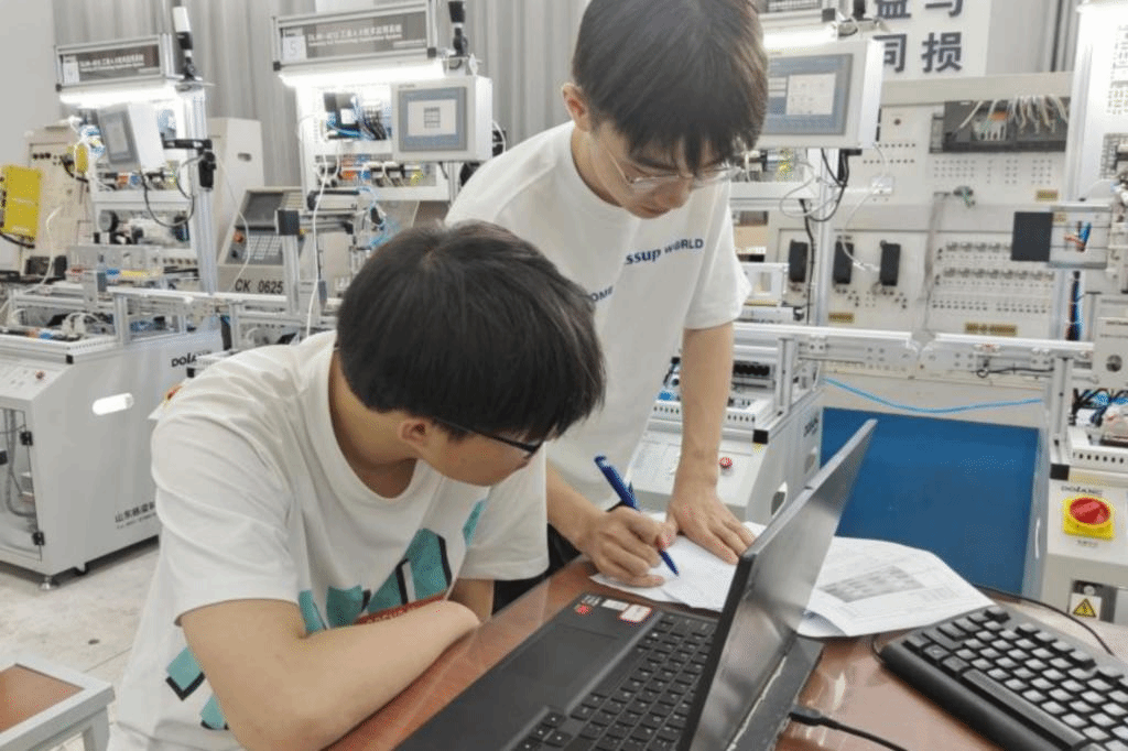竞赛分为初赛和决赛两个阶段,本着公平公正的原则,承办方于初赛和决赛前开展相应培训,讲解竞赛相关知识点,并全程开放PLC综合实训室,供选手自主练习备战比赛。竞赛全程以实操形式进行,并在原有基础上增加与人机界面的组态使用试题,全方位考察选手综合应用能力。比赛中,参赛选手们专心致志、全力以赴,从电机控制、继电控制电路安装与调试、PLC控制系统的设计、PLC控制程序编程调试等方面展现自身专业技能,最终实现人机交互功能。