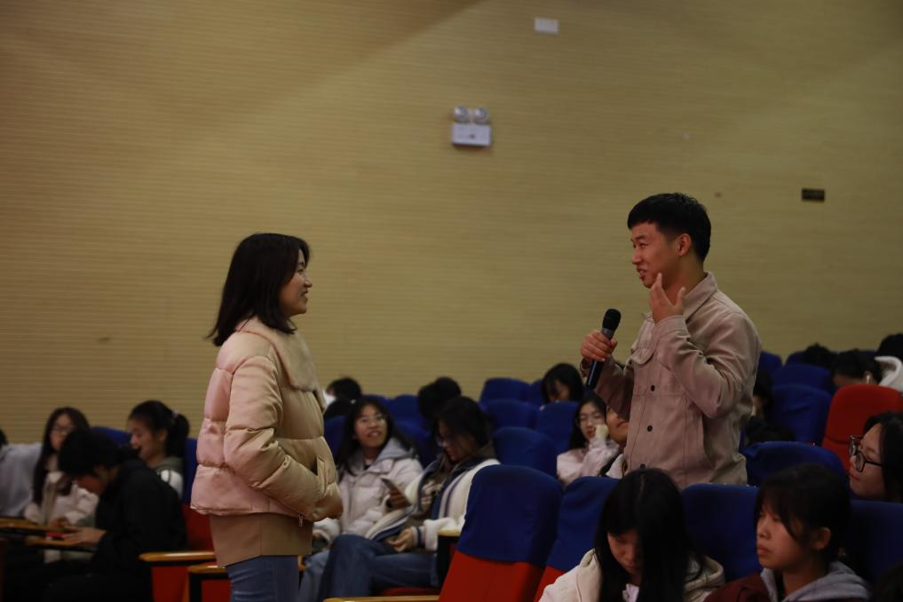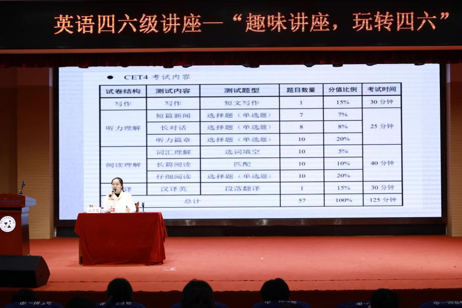 两位老师首先对英语四六级考试做了简单介绍,并从听、说、读、写四个方面进行了具体题型的技巧阐述。兰老师强调:“语感是培训出来的,技巧是练出来的,经验是不断总结出来的”。同时为了更好地解答同学们在备考中遇到的疑惑,讲座穿插了互动环节,同学们高涨的热情使现场的氛围轻松活跃。掌握一定的英语水平,不仅是提升自身综合素质的重要途径,更是顺利毕业和就业的关键因素,未来校学生会学风建设部将持续开展英语学习特色活动,推出大学英语综合能力提升系列专题讲座,有效帮助同学们明晰英语学习思路,满足多样化和个性化的学习需求。