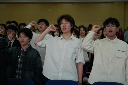 校青协第十八届副会长宁晓向全体志愿者作2022-2023学年工作总结,她表示,过去一年里校青协积极投身学校志愿服务,用实际行动弘扬志愿服务精神,并与湖南食品药品职业技术学院、长沙民政职业技术学院、湖南交通职业技术学院等高校共同开展了志愿服务工作交流会。她希望新一届协会成员能够继续秉承“奉献、友爱、互助、进步”的志愿精神去奉献社会,服务他人。第十八届协会副会长任国柱为新任干事颁发聘书,第十九届协会会长杨霞带领协会成员进行宣誓。