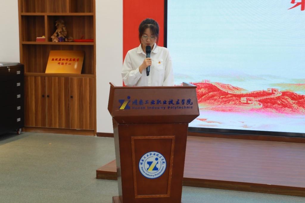 商务贸易学院电商23-4班曹浩然作为优秀团员代表发言,她表示,工院青年将坚定崇高的理想信念,脚踏实地,怀有志气、骨气和底气,勇敢地肩负起时代赋予我们的重任,用实际行动诠释“共青团员”的称号,为实现中华民族伟大复兴的中国梦而努力奋斗。