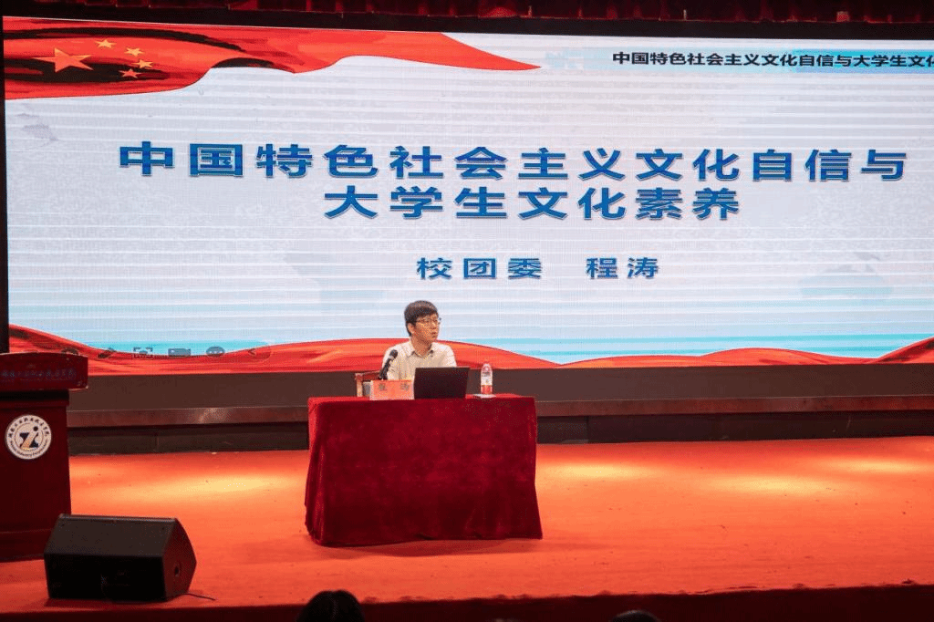 开班仪式后,程涛以“中国特色社会主义文化自信与大学生文化素养”为题,从文化自信何以“信”、文化自信“信”什么、文化自信如何“信”、文化自信躬自“信”四个方面深入讲授第一课,积极引导广大青年坚定文化自信、增强主动精神,自觉担负起新的文化使命,为强国建设、民族复兴贡献青春力量。