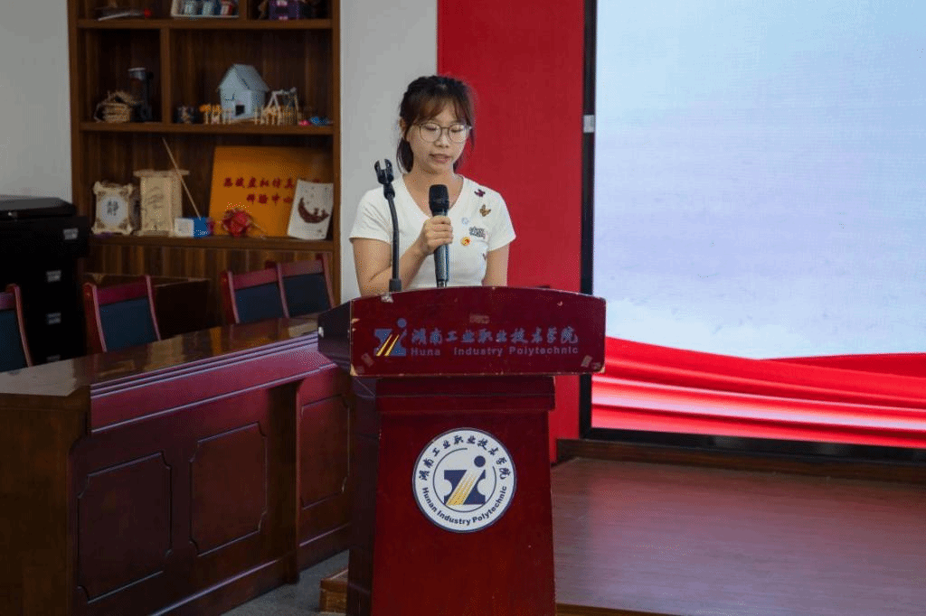 商务贸易学院电商2024-1班周佳颖作为优秀团员代表作了发言。她以“团徽是青春印记与前行动力”为喻,号召新团员在志愿服务与文明实践中锤炼品德,将个人理想融入民族复兴洪流,以“敢教日月换新天”的豪情与“板凳要坐十年冷”的毅力彰显青年担当。