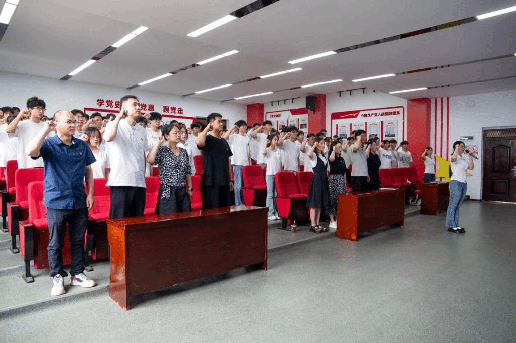 6月18日,我校在尚善楼1101教室举行2025年上半年新发展团员入团仪式。校团委书记程涛、各二级学院团总支书记、青年学生代表及全体新发展团员参加仪式。仪式由校团委组织部李权同学主持。