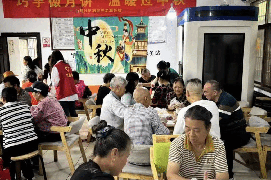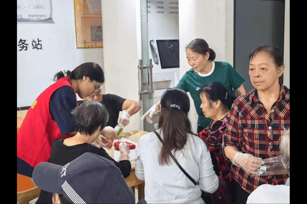 活动现场,志愿者与社区居民携手开展月饼制作体验活动,从揉面、擀面到用模具压出玉兔、桂树等图案,大家在沉浸式体验中深切感受中秋文化的独特魅力。制作过程中,志愿者耐心地向居民们讲解中秋传统习俗与月饼制作工艺,中秋文化在互动中得以生动传承。活动结束时,志愿者主动帮助行动不便的老人打包,贴心叮嘱他们饮食注意事项,用一份份承载团圆寓意的手作月饼,将中秋的团圆与志愿的温暖送到老人心间。