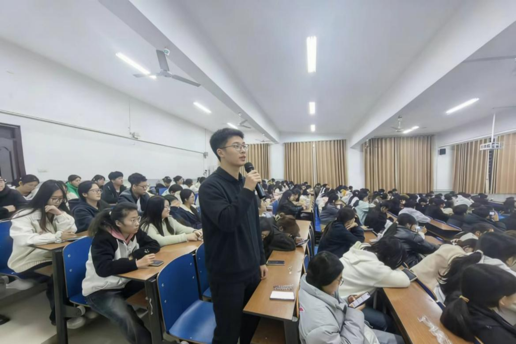 11月28日下午,由校学生会组织的“破浪逐风,高分突围”英语四六级讲座在知行楼2102成功举办。讲座特别邀请我校2023届优秀毕业生覃艳霞为同学们答疑解惑。