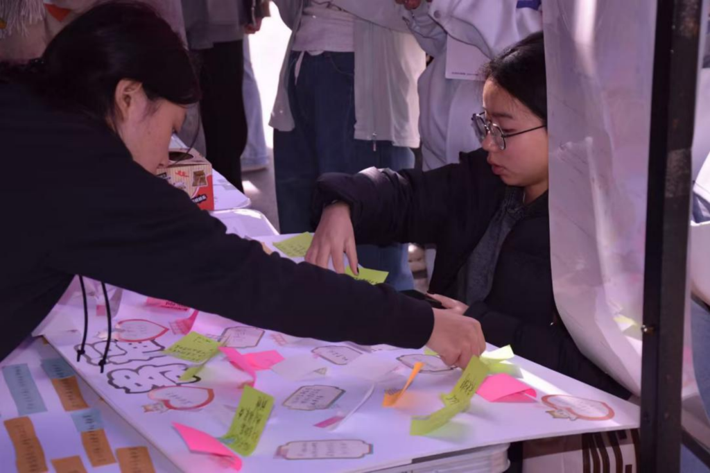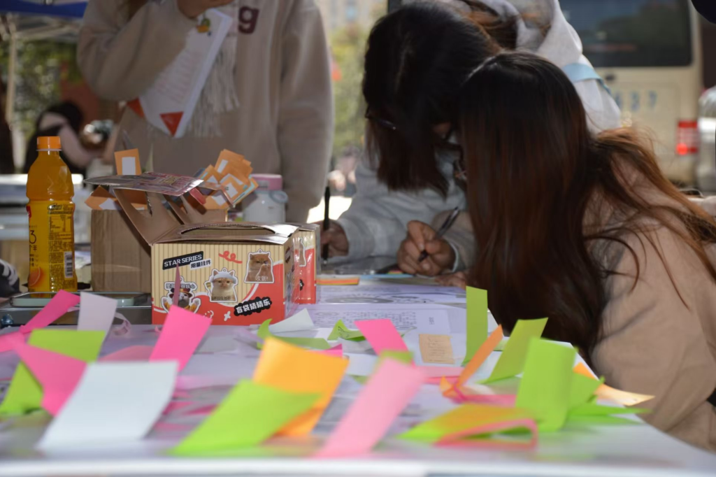 活动当天,工作人员早早到岗筹备,引导参与者领取书写工具与便利贴,现场设置白板供大家粘贴寄语。同学们围绕校庆七十载主题,挥毫书写诗词、祝福与感悟,笔墨间满含深情。