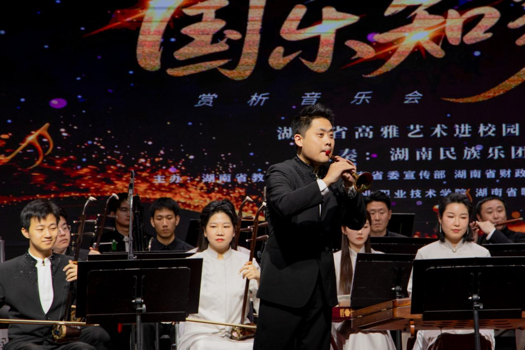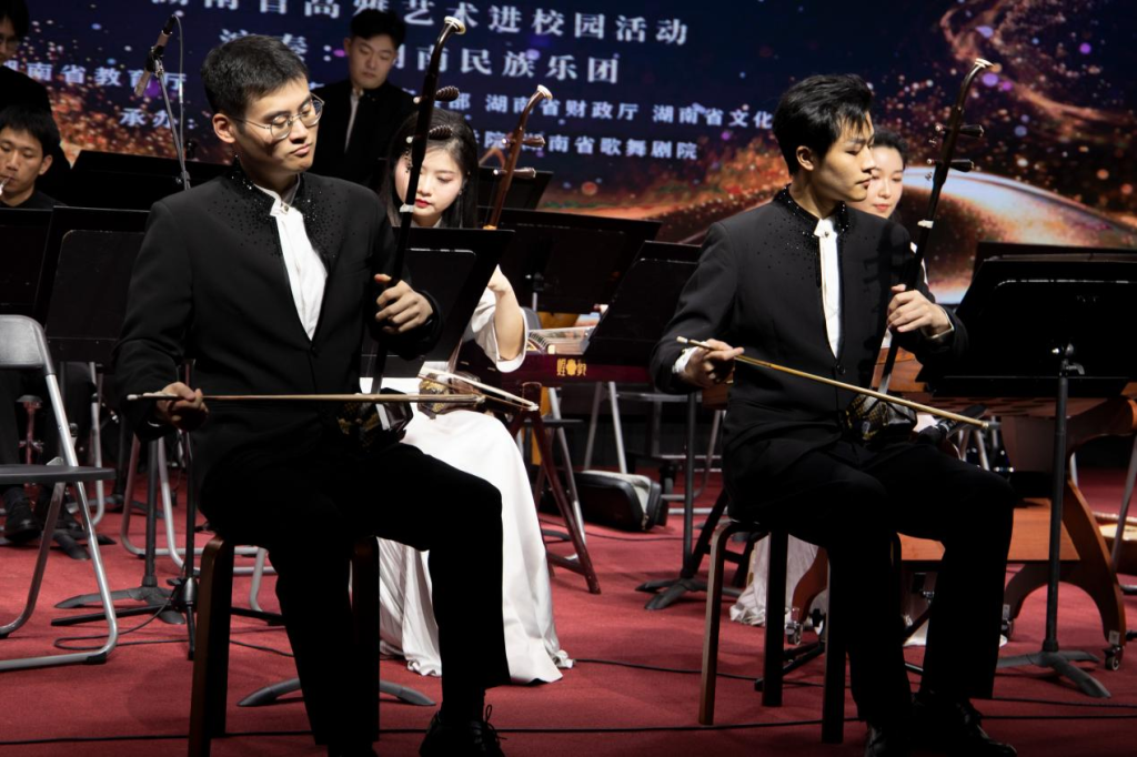 4月21日晚,由湖南省教育厅、中共湖南省委宣传部、湖南省财政厅、湖南省文化和旅游厅主办,我校和湖南省歌舞剧院承办的“高雅艺术进校园——《国乐知多少》赏析音乐会”暨“楚怡润心系列文化讲坛”在我校大学生活动中心1102精彩上演。湖南民族乐团以精湛的演奏技艺奏响国乐华章,为全校师生呈现了一场兼具专业性与趣味性的文化盛宴。