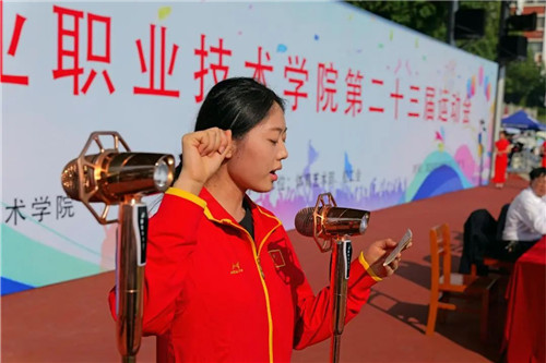 随后,运动员代表、商务贸易学院市营2022-1班向紫鑫同学和裁判员代表、体育艺术部老师廖刚分别代表全体运动员和全体裁判员宣誓。