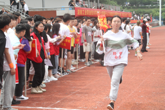 枪响之后第十四届千人万米跑总决赛正式开始,本次比赛以男女交叉接力赛形式进行,各学院各派出26名学生进行此次比赛。每当运动员完成学院旗帜交接时,观众席呼喊声气势如虹,连绵不断,伴随着阵阵助威声,推动着在运动场上挥洒汗水的运动员们。各学院运动员在运动场上也纷纷展现出学院风采,精神百倍,活力四射。工业设计与艺术学院获得本次大赛第一名并获“优秀啦啦队”奖,商务贸易学院获得第二名,经济管理学院获得本次比赛第三名,电气工程学院获得体育道德风尚奖,机械工程学院、汽车工程学院、信息工程学院获得本次比赛的优胜奖。