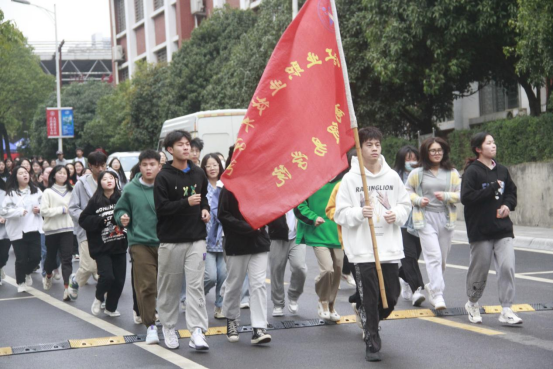 启动仪式后,各学院代表班级高举院旗,从新纪元广场出发,途径行政楼、鹤鸣山、图书馆、公寓门口、田径场等地,最后回到新纪元广场。跑步过程中,同学们响亮、整齐的口号声响彻整个学校,同学们神采飞扬、斗志昂扬,展现当代大学生积极向上的精神风貌。