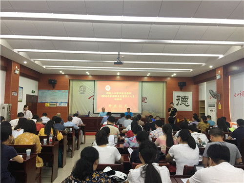 本网讯 7月16日至17日,学校2018年暑期辅导员暨学工人员培训在韶山开展。学校党委副书记陈超、副校长邓建国,组织人事处、学生工作部、校团委、招生就业处、保卫部等部门负责人、科长,各二级学院党总支书记、全体辅导员参加了学习。