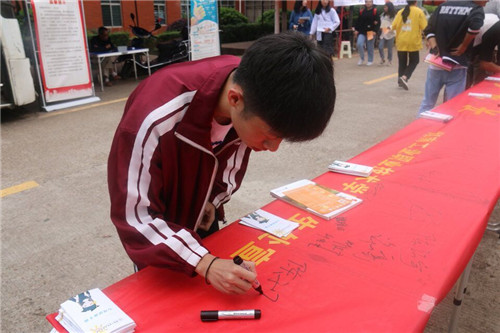邓建国与师生们在“珍爱青春,追逐梦想”的活动主题横幅上签名,并一起观看了心理健康知识长廊展。邓建国强调,要通过“5.25心理健康活动月”不断普及心理健康知识,营造积极向上的校园心理文化氛围,促进学生心理健康发展。