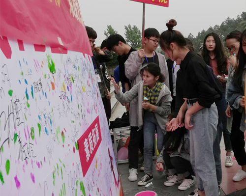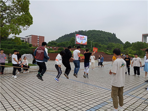 活动路线从学校田径场集合出发,途经新纪元广场、鹤鸣山、图书馆门前、篮球场,最后回到田径场。五个素质拓展点设置了“同心鼓”“惊喜气球、手印墙”“螃蟹运球”“指压笑容”“跳大绳”五个不同的游戏项目,分别对应“德智体美劳”,每完成一个,便可得到相应印章并前进下一拓展点。