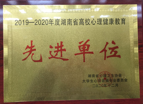 本网讯 12月5日至6日,湖南省心理卫生协会大学生心理咨询委员会第十五届学术年会在长沙召开。会议对湖南省高校年度先进单位和先进个人给予了表彰。我校荣获2019-2020年度湖南省高校心理健康教育先进单位;学校学生心理健康协会被评为湖南省高校优秀心理类学生社团,经济管理学院陈瑶老师、机械工程学院李雪艳老师荣获湖南省高校心理健康教育先进个人。