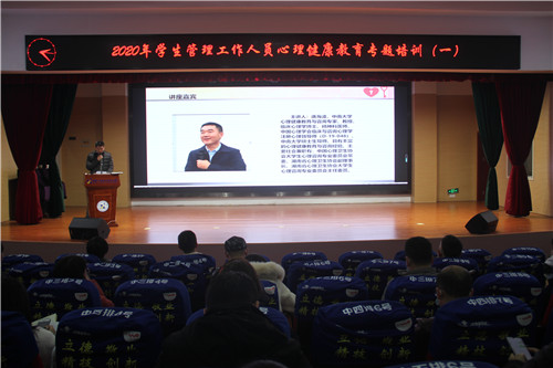 本网讯 11月24日下午,我校在大学生活动中心举行学生管理工作人员心理健康专题培训。邀请心理健康教育与咨询专家、临床心理学博士、精神科医师、中南大学唐海波教授做主题讲座。学校副校长成涛,学生工作处、校团委、招生就业处、保卫处等部门负责人及相关工作人员,各二级学院党总支书记,全体辅导员、班主任,部分学生朋辈引航员认真聆听了培训讲座。学生工作处处长杨文斌主持活动。
