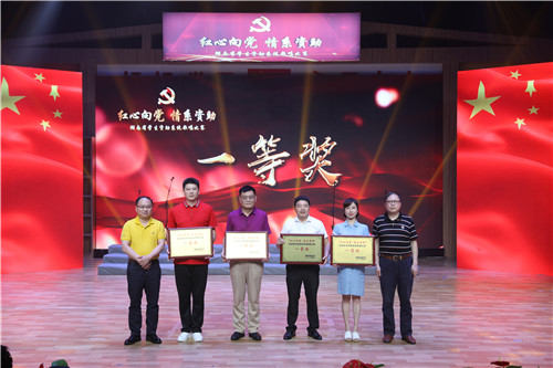 本网讯 6月24日,由湖南省教育厅主办的“红心向党 情系资助”全省学生资助系统歌唱比赛在湖南省教育电视台隆重举行,比赛现场通过直播形式同步播出。我校党委书记刘建湘带领从事学生资助工作的老师参加比赛,表演的曲目《在希望的田野上》以98.58分的最高分夺得第一名,荣获一等奖。