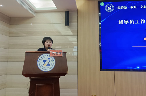 成涛为我校2021年立项建设的“信达雅教育工作室”和“师道”辅导员工作室授牌。她指出,辅导员是开展大学生思想政治教育的重要力量,学校党委高度辅导员队伍建设,近年来,辅导员队伍建设也取得了不错的成绩,希望老师们聚焦立德树人根本任务,立足岗位实际,进一步加强工作总结和研究,深化实践成效,推动辅导员工作规范化、精品化、科学化,努力构建“人人有特色,院院有品牌”的育人环境,更好地为学生健康成长成才搭好桥、服好务,不断提升我校大学生思想政治工作水平。
