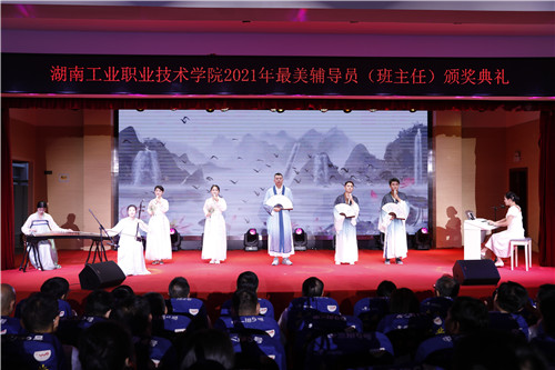 典礼现场,古典音诗画、歌曲演奏、诗歌朗诵、情景剧等辅导员自编自演的节目,展现了以“最美辅导员、最美班主任”为代表的老师群体忘我工作、无私奉献的精神面貌,诠释着他们对这份工作的热爱。