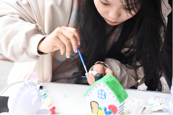 “发现美好,感恩当下”图片打卡活动以照片墙的形式展出,展示了师生对生活的热爱,号召广大师生珍爱生命、感恩美好、不负韶华。在“感恩有你,爱的传递”手工制作活动现场,同学们拿起画笔为娃娃添彩,充分发挥自己的想象力,体会创作的乐趣,感受心态平和带来的成就感。电商22-5班的周心如感慨道:“参加活动让我心情愉快,专注于上色过程好像情绪得到平静,画完这个娃娃很有成就感,我要把它送给我的好朋友,传递这份平静,也感谢她的陪伴。”在“心随影动,感恩父母”观影活动中,《你好,李焕英》这部电影让现场许多学生流下了感动的泪水,观后大家纷纷表示将常怀感恩之心,懂得珍惜、珍爱、珍重。“感恩有你、伴我成长”鲜花赠予活动和“感恩遇见,一路成长”真情表白活动吸引了400多名学生的参与,同学们在活动中用心诠释对自我、对他人的感恩之情。