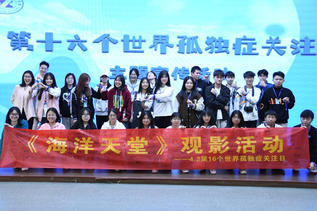 活动现场还播放了电影《海洋天堂》,这是一部以孤独症患者为题材的影片。影片以父爱为主线,孤独症儿子大福的生活变化为暗线,向观众们反映了一个现实问题:孤独症患者在亲人离世后,到底该如何生活?影片引发了在场师生的深入思考和热烈讨论。模具2022-2班郭旭同学感慨道:“很轻的电影,很重的生活。在电影平缓舒适的节奏里,我看到了一个痛苦而又伟大的故事,感受到了孤独症儿童父母平凡而伟大的爱,唤起了我们对特殊群体的关注和爱护。”