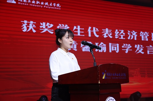 学校金融20-5班学生黄馨瑜是学校2021-2022学年“自强之星”获得者,她介绍自己的求学与成长经历,表示今后将继续秉承“立德、敬业、精技、创新”的校训,奋勇向前。