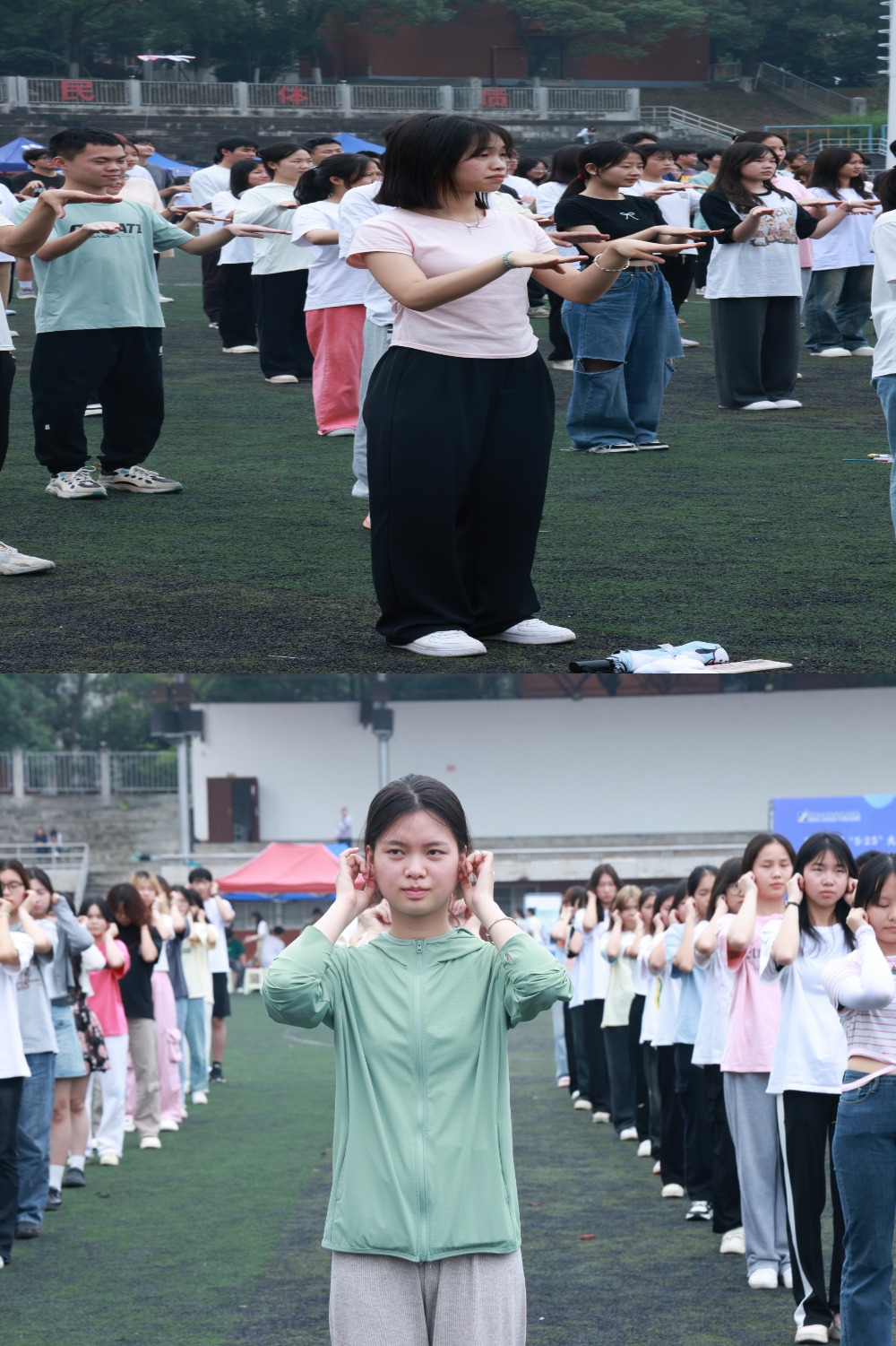 心理游园会还设置了“千人齐跳减压操”活动。减压操将中国传统文化融入其中,结合了十巧手指运动和传统养生运动进行改编创作。570名同学身穿宽松舒适的服装,跟随领操员一起在轻快舒缓的音乐中放松身体,在欢快动感的律动中愉悦身心,浸润心灵。