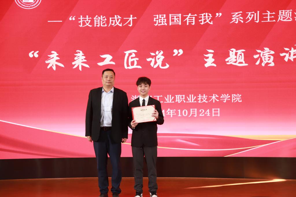 “耐心专注、咫尺匠心,诠释极致追求;锲而不舍、身体力行,传承匠人精神。他们不一定是声名显赫的伟人,但必须是我们心中的榜样。”10月24日下午,学校“技能成才,强国有我” 系列主题活动之“未来工匠说”主题演讲比赛决赛在图书馆报告厅如火如荼地进行。比赛吸引了各学院280余名学生现场观摩学习,学生工作部部长段可、学生工作部副部长杨迪禹出席活动并为获奖学生颁奖。