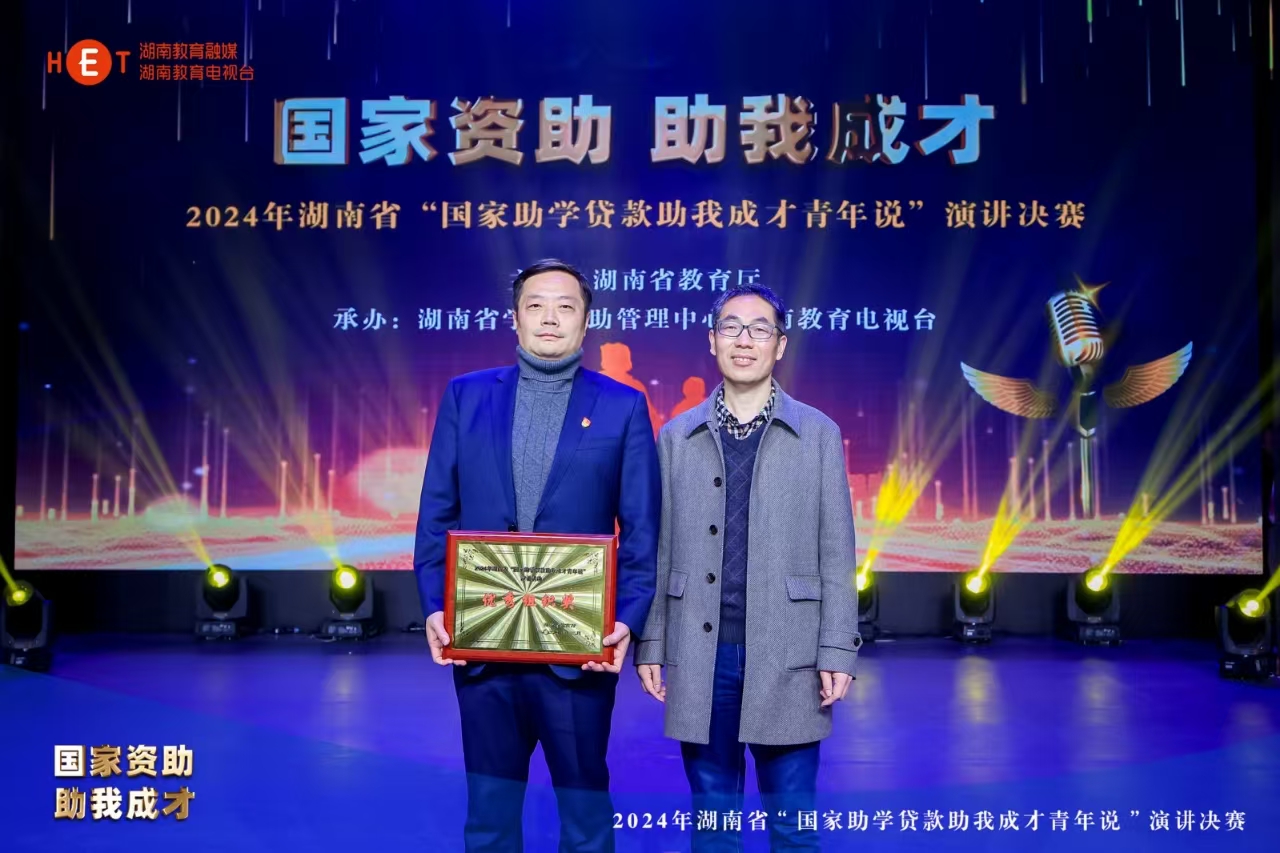 近日,由湖南省教育厅主办的 2024年湖南省“国家助学贷款助我成才青年说”演讲活动决赛在湖南教育电视台举行,学校获优秀组织奖,是全省唯一获得此项殊荣的高职院校。