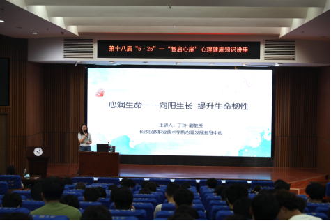5月27日下午,长沙民政职业技术学院心理健康教育中心丁玲主任以《心润生命—向阳生长 提升生命韧性》为题展开讲座。讲座以提升生命韧性为旨,从“名字由来”启发生命独特性认知,到“时间手账”规划生命价值,再到科学应对危机及运用积极心理学,着力锻造学生认识生命、珍爱生命、发展生命的智慧与应对挑战的坚韧品质。