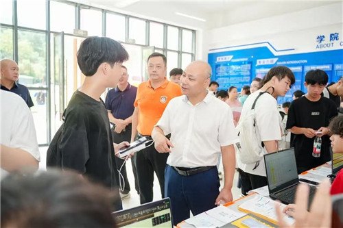 我校校长吴亮红等校领导及相关部门负责人来到了迎新现场,与新生及家长交流,回答他们所关心的问题。