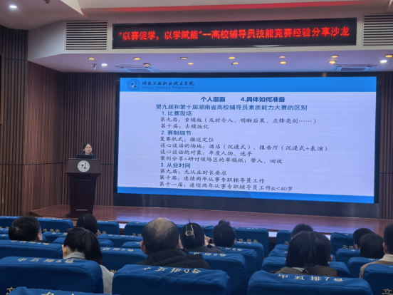 “两位优秀同仁的分享既有理论高度,又有实践深度,为备战省赛提供了清晰的思路和可操作的方法。”近日,学校在图书馆报告厅举办了“以赛促学,以学赋能”高校辅导员技能竞赛经验分享沙龙。活动由学生工作部部长段可主持,各二级学院党总支副书记、全体专职辅导员参加活动。