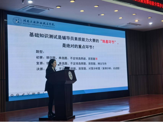活动中,第十七届湖南省辅导员年度人物获得者汤灵以《基础知识测试的笨办法与巧心思》为题,结合自身备赛经历,深入浅出地讲解了辅导员素质能力大赛中基础知识测试环节的备考策略。“笨办法”在于日积月累的扎实学习,“巧心思”在于灵活应变的考场智慧,她将二者巧妙结合,引导大家在理论学习中筑牢根基,在实战中沉着应对。紧接着,第十六届湖南省辅导员年度人物获得者纪文婷带来了题为《从案例到能力:辅导员素质能力大赛案例分析的思路、方法与实战经验》的分享。她聚焦于大赛中的案例分析环节,通过生动的实战案例,系统梳理了案例分析的基本思路、核心方法以及在实战中的应对技巧,强调要透过案例现象看本质,将解决具体问题的过程转化为提升职业能力的内生动力,为在场辅导员打开了新思路。