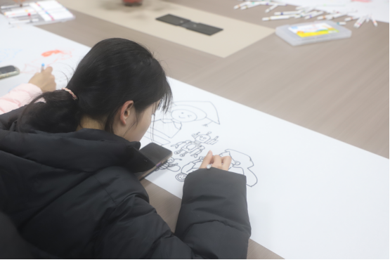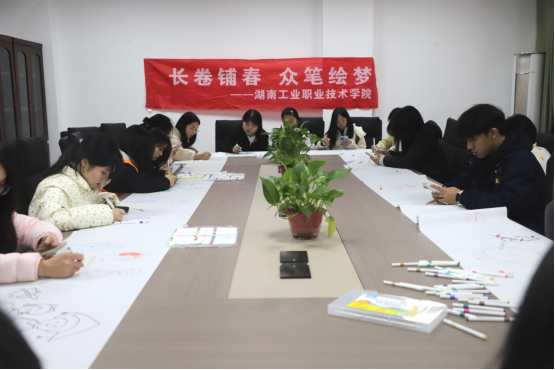活动现场气氛热烈、创意涌动,同学们围聚长卷旁,执彩笔、蘸丹青,各展才情、挥毫泼墨,在百米画卷上尽情勾勒心中向往:有的以灵动可爱的卡通人像,描绘未来的自己,定格青春最真挚的期许;有的融入齿轮、芯片等专业符号,巧妙展现学科特色,一笔一画勾勒职业理想与人生方向;有的放飞奇思妙想,描绘智能校园、未来城市的科技盛景,绘就属于新时代青年的发展蓝图;还有的以明快斑斓的色彩铺陈底色,写下暖心寄语与真挚祝福,让温情与朝气在纸上流淌。一笔一画凝聚匠心,一墨一色承载憧憬,在众人的同心创作下,百米长卷渐渐色彩斑斓、意蕴丰盈,成为校园中一道独具匠心、朝气蓬勃的靓丽风景。
