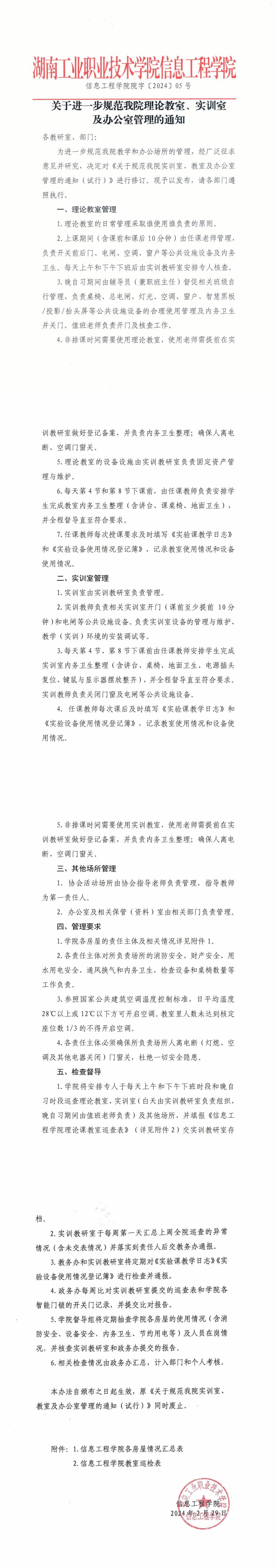 关于进一步规范我院理论教室、实训室及办公室管理的通知