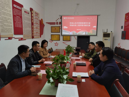 3月24日上午,山东外贸职业学院国际运输与物流学院党总支书记武传伟等一行三人来我院调研交流全国党建工作样板支部建设及验收工作。我院党总支书记彭伟等参加了调研交流会。