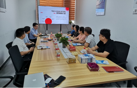 7月4日,信息工程学院院长杜飞明带队,网络技术教研室副主任邓丽君,网络技术教研室专任教师蒲骁旻、刘霜霜、李佳等一行赴长沙泰克教育调研。泰克教育集团副总裁陈世杰、人才培养事业部总经理陈鹤、长沙公司负责人等相关人员陪同参观并座谈。
