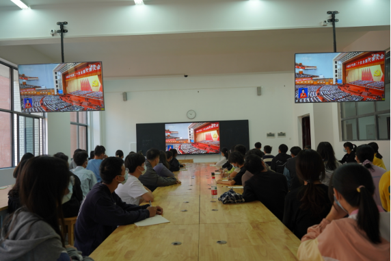 主活动会场有学院教师党员41人、学生党员94人、团学干部115人共同收看了党的二十大开幕会,分活动现场有23个团支部共计937人进行了集中收看,其余37个团支部分散收看。大家认真聆听习近平总书记所作的报告。开幕式结束后,各党支部、团总支各部门分别组织召开了研讨会,分享学习感受,撰写活动心得,会后共提交活动心得近140篇。师生们一致表示,要认真学习宣传贯彻党的二十大精神,提高政治站位,锤炼党性修养,强化责任担当,用党的最新理论成果武装头脑、指导实践、推动工作,为实现中华民族伟大复兴的中国梦作出新的更大贡献。