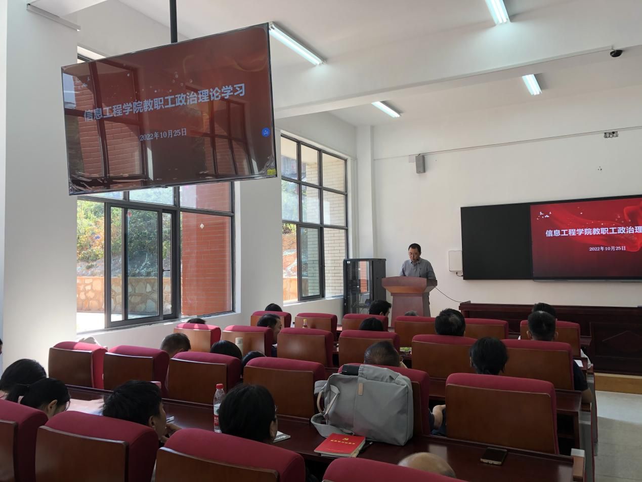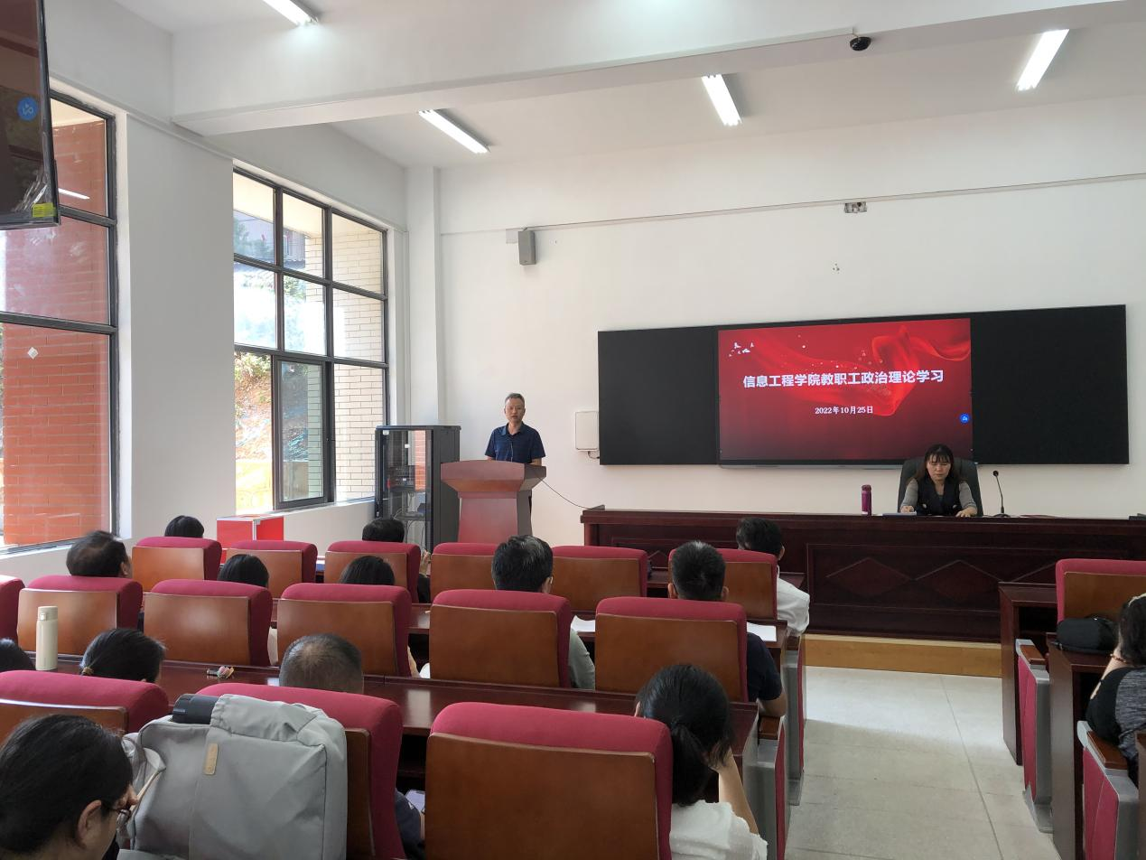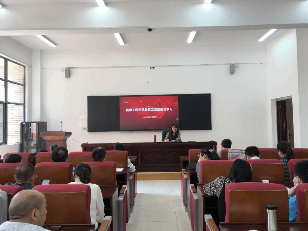 2022年10月25日下午,信息工程学院在敏行楼101会议室开展教职工政治理论学习,全院教职员工参加了此次学习,会议由学院党总支书记廖佑莲主持。