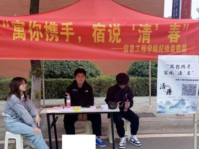 为大力弘扬“爱国、求知、创业、兴工”的楚怡精神,实施“党风清明”“校风清净”“教风清正”“学风清朗”四大工程,营造党员领导干部清廉从政、教师清廉从教、职工清廉从业、学生清廉修身的清廉教育生态,构建“以清为美,以廉为荣”的清廉教育氛围,信息工程学院依托寝室文化活动月系列活动,于2022年11月21--11月23日牵头举办“寓你携手,诉说‘清’春” 寝室文化节,面向全校所有学生进行进行以寝室为单位的“干净寝室”比拼与“清廉宿舍”征文活动。