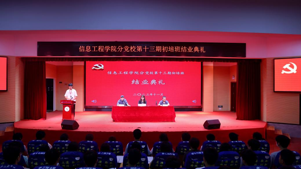 2023年11月3日中午,信息工程学院分党校第十三期初培班在1102教室举行结业典礼。信息工程学院党总支书记廖佑莲、党总支副书记盛毅、智能软件学生党支部组织委员肖高贤出席典礼,初培班全体学员参加。本次典礼由第十二期初培班班长寇家赫主持。