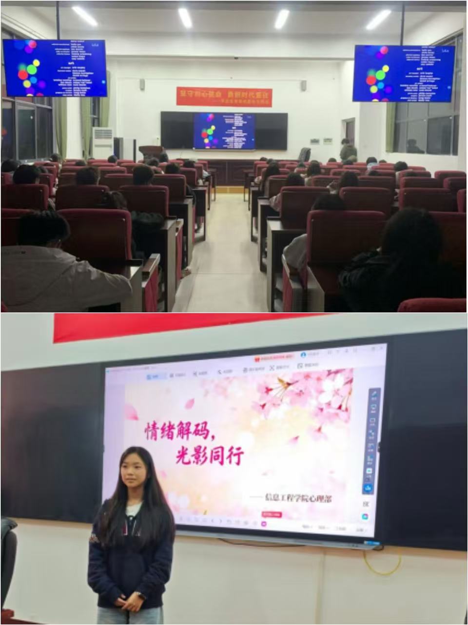 为帮助学生科学认识情绪、掌握情绪调节技巧,缓解学业竞争与人际关系带来的心理压力,10月22日晚19点,信息工程学院心理部在敏行楼104多功能报告厅成功举办“情绪解码・光影同行”主题心理部观影活动,学院各年级学生积极报名参与。